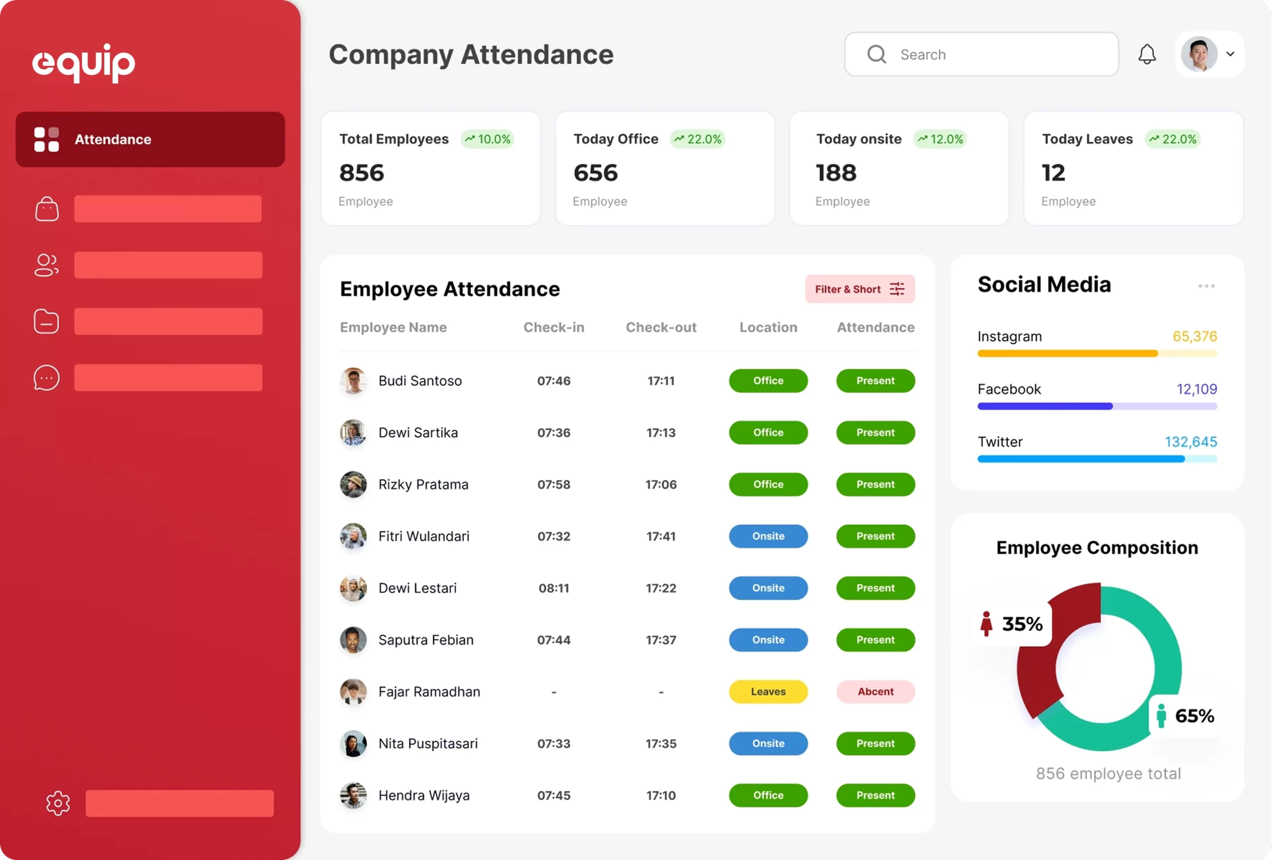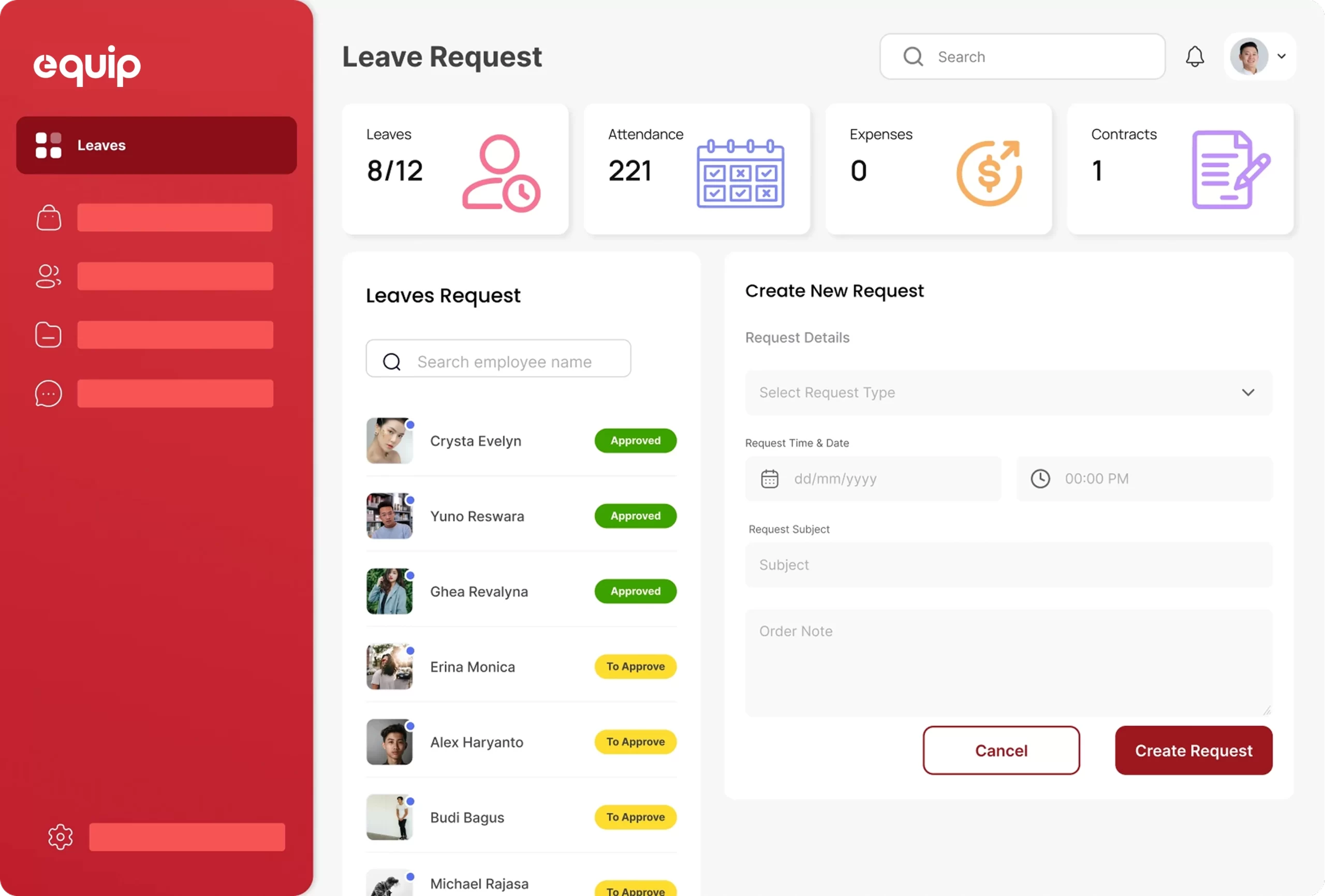 Tetap fokus pada pertumbuhan bisnis Anda, andalkan HRM Equip untuk ciptakan lingkungan kerja yang lebih efisien.