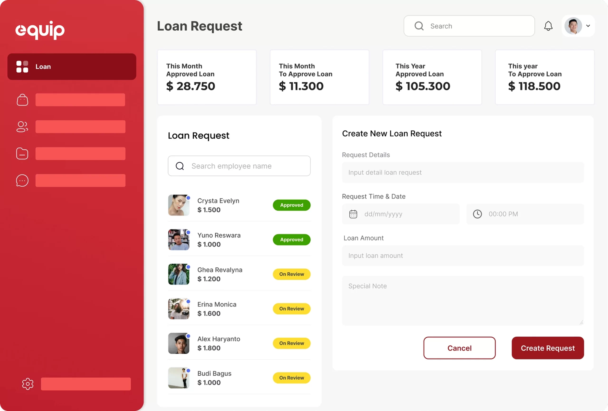 Atur, lacak, dan kontrol peminjaman karyawan secara real-time di satu sistem terintegrasi.
