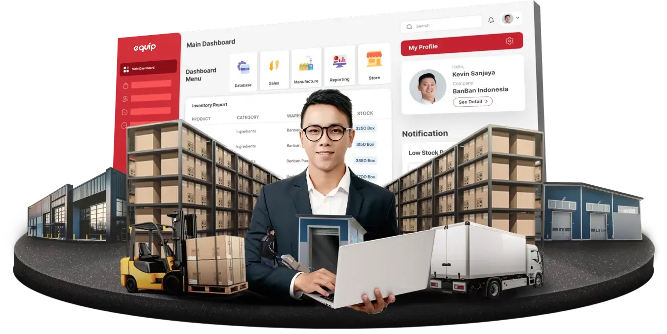 Sebagai produsen peralatan perhotelan, alur kerja kami berfokus pada manajemen inventory dan pengelolaan klien. Sistem ERP EQUIP menyederhanakan proses bisnis kami mulai dari pengadaan hingga pengiriman barang ke klien.