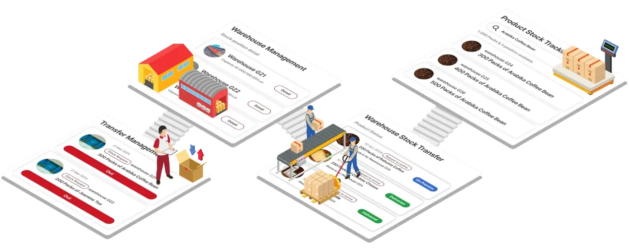 Optimalkan pengelolaan keluar masuknya barang dari satu lokasi ke lokasi lainnya dalam satu platform.