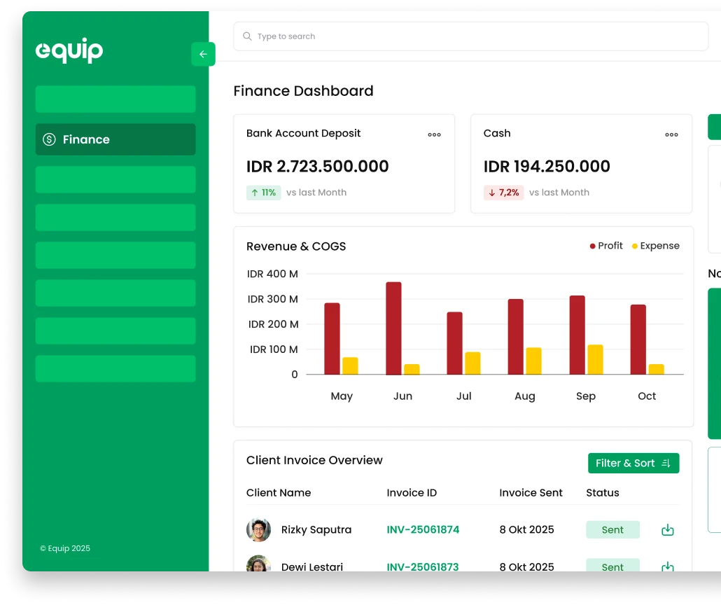EQUIP adalah salah satu aplikasi akuntansi online terbaik. Anda dapat mengoptimalkan proses pencatatan transaksi keuangan Anda dengan menggunakan software akuntansi dari EQUIP.