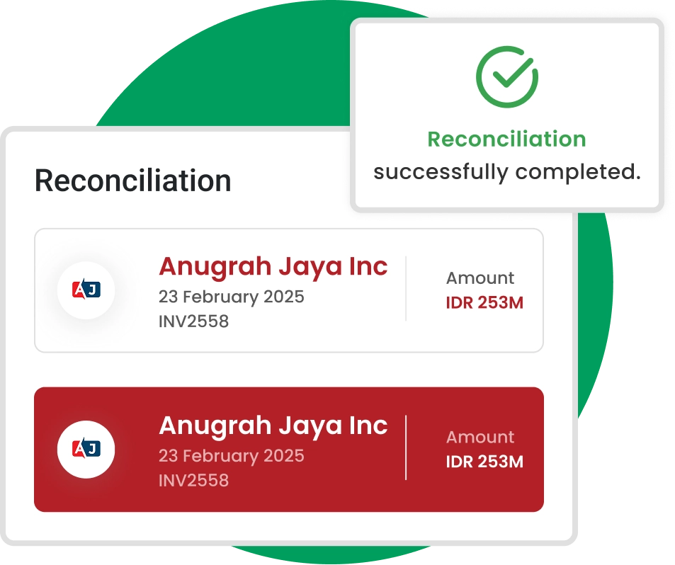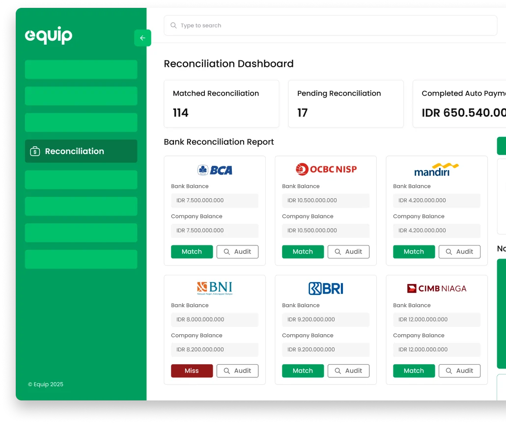 Minimalkan selisih pencatatan dan pastikan akurasi laporan keuangan dengan rekonsiliasi bank otomatis.