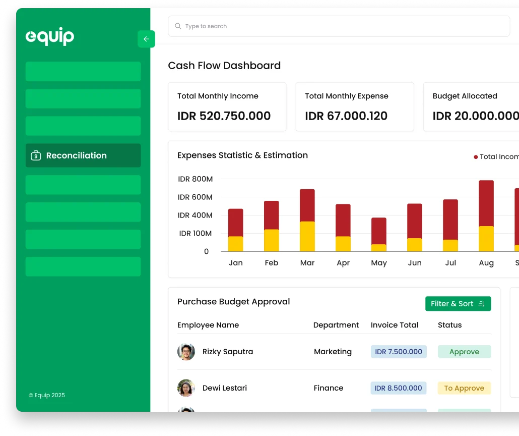 Kelola anggaran, kontrol biaya, dan hasilkan laporan keuangan secara akurat dan otomatis.
