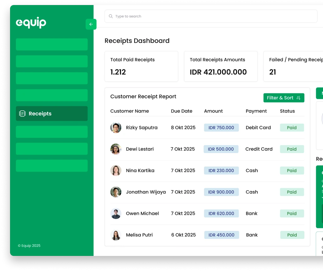 Otomatiskan pembuatan invoice hingga penerimaan payment dalam satu sistem terpadu.