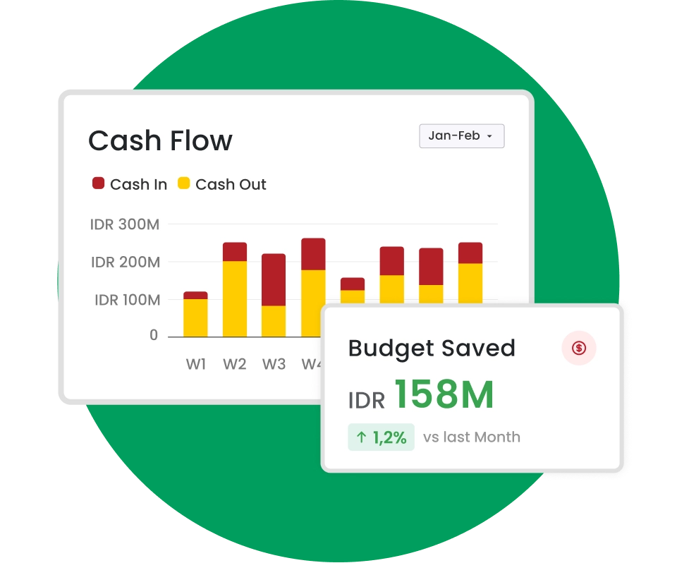 Kendalikan penggunaan dana secara efisien agar pengeluaran sesuai rencana dan biaya tetap terkendali.