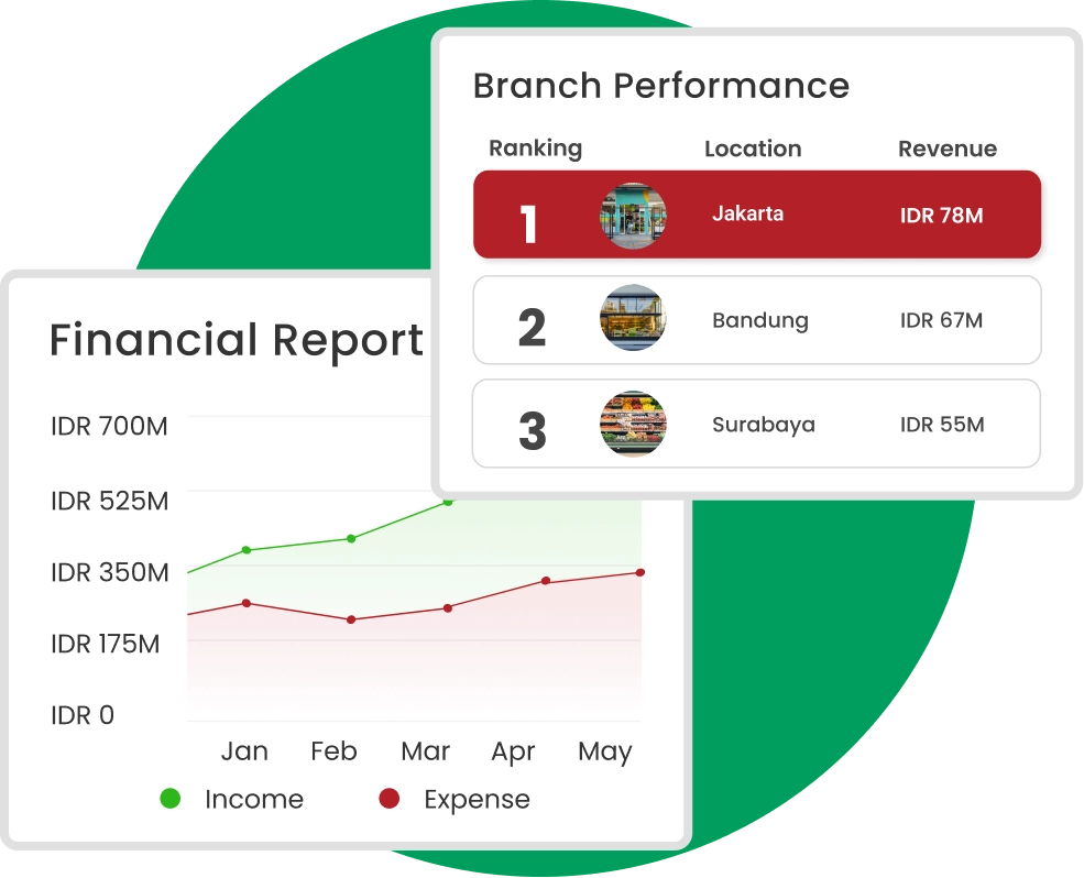Pantau dan kendalikan seluruh aktivitas finansial bisnis secara menyeluruh dan terperinci.