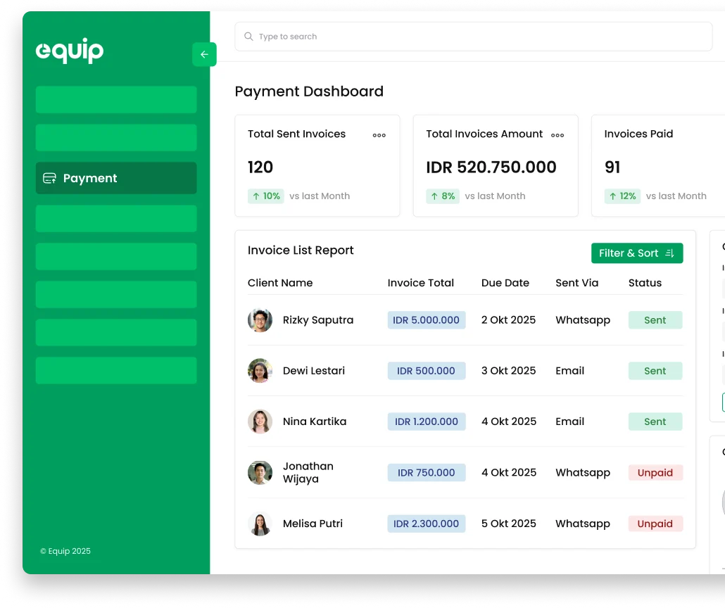 Kelola invoice secara otomatis untuk memastikan pembayaran tepat waktu dan menjaga efisiensi biaya operasional.