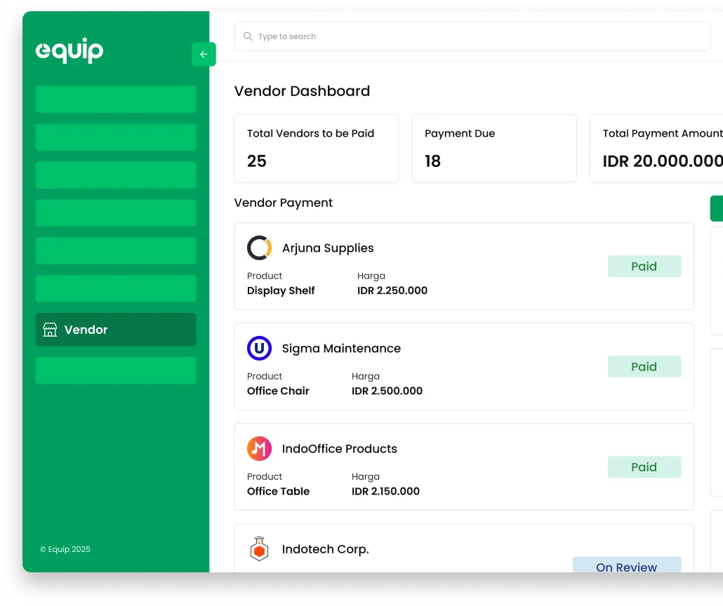 - Pantau Status Pembayaran Vendor
